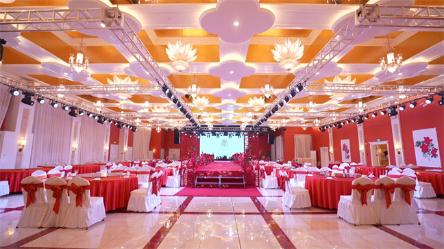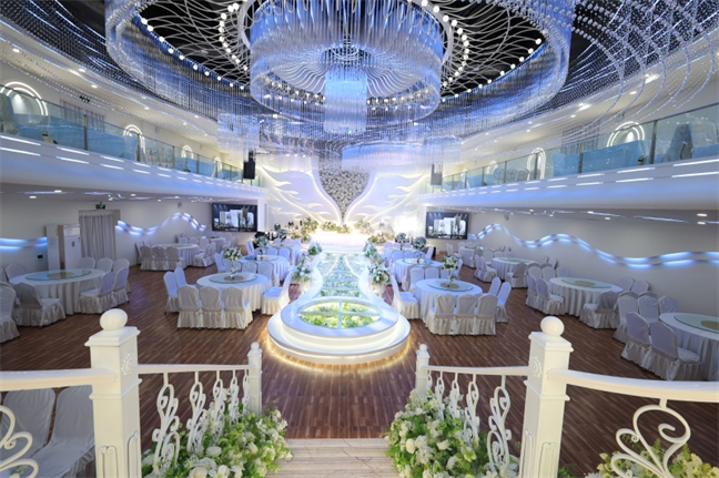 皇宮廳—金碧輝煌、皇宮式裝修,面積1038㎡,層高8.6米,配備愛情階梯、軌道威亞、二層觀禮臺(tái)、浪漫燈光秀、旋轉(zhuǎn)升降舞臺(tái)、頭頂天幕連接開合大屏。可承接50桌的大型宴會(huì),也可舉辦600人的大型會(huì)議;還可用作會(huì)展、車展場(chǎng)地,每逢節(jié)假日還為市民上演文藝節(jié)目。